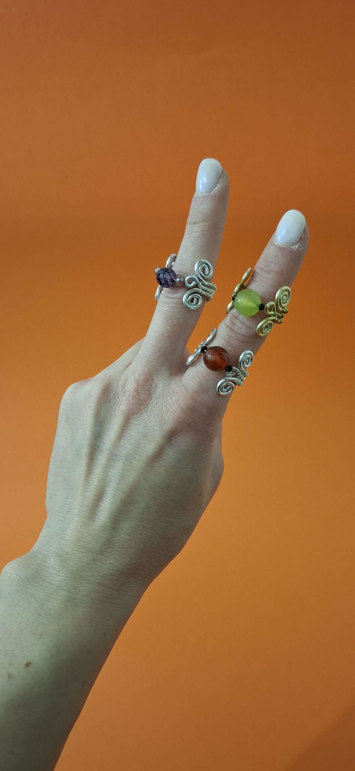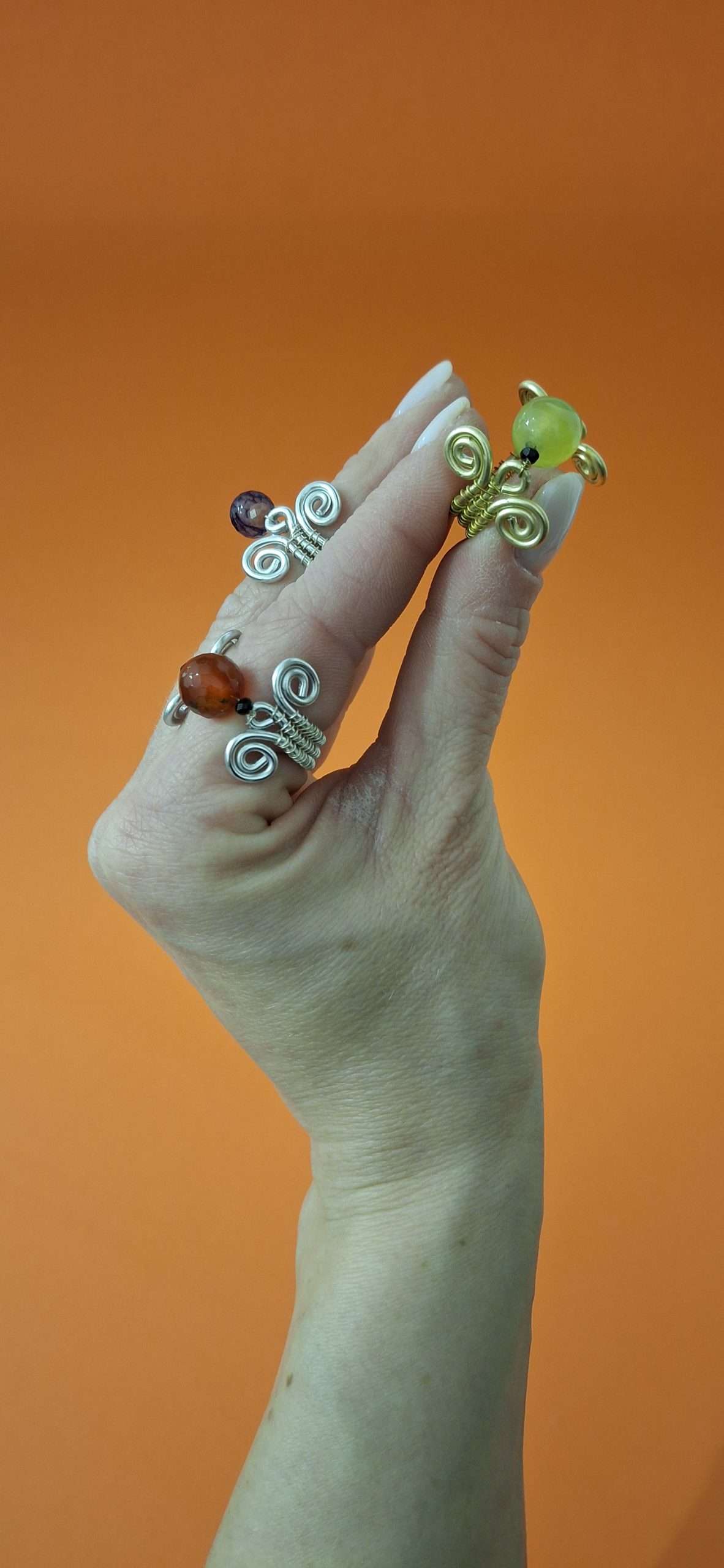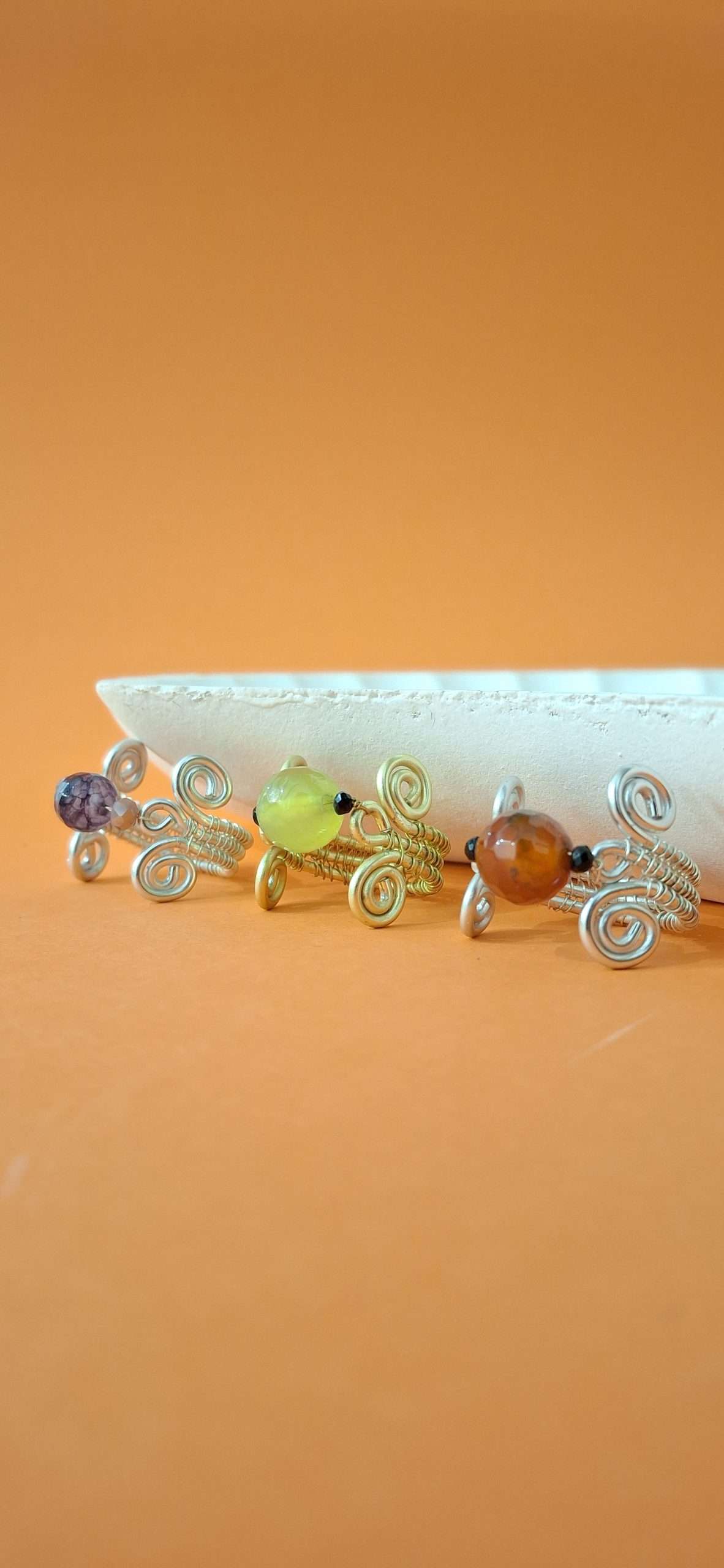 Anello interamente realizzato a mano con la tecnica Wire. Alluminio anodizzato silver, agata sfumata viola, cristalli rosa antico. Prodotto anallergico, resistente all’acqua, non cambia colore col tempo, non ossida. Un intreccio di metalli con pietra naturale e micro-cristalli, da abbinare ad ogni stile di outfit