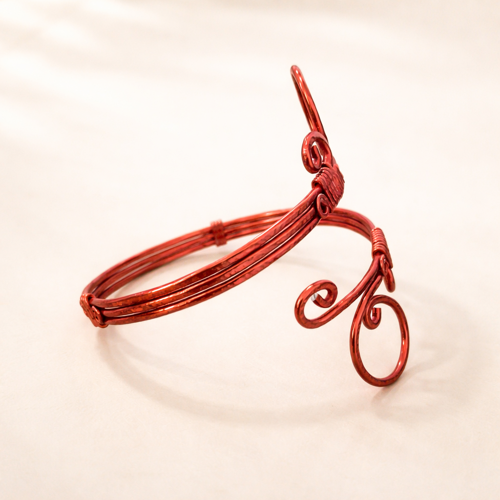 Bracciale in alluminio anodizzato, modellato e martellato a mano con la tecnica Wire. Il materiale non ossida e non cambia colore, puoi quindi utilizzarlo anche a mare