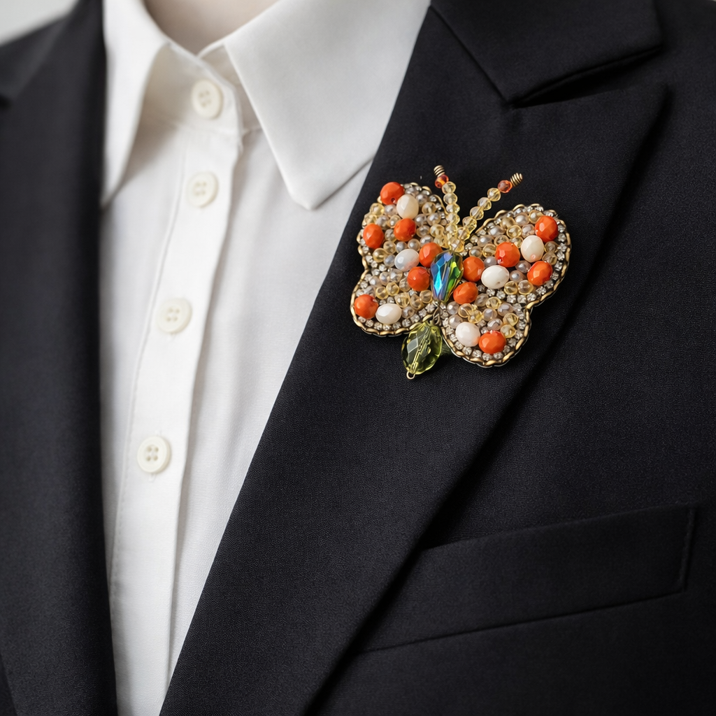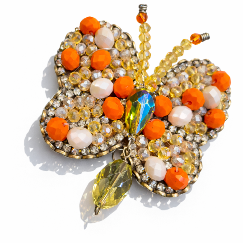 Spilla interamente realizzata a mano, dal disegno su carta al ricamo su feltro. Cristalli di varie dimensioni, corallini ,catene di strass, gocce di cristallo. Retro rifinito in simil-pelle. Indossa ciò che caratterizza di più il tuo essere. Un accessorio ricco di significato per chi ama la libertà